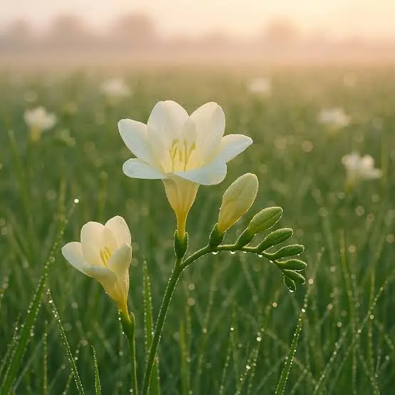 Sous un soleil doré, des vergers lumineux exhalent la rondeur gourmande de poires juteuses aux reflets ambrés. Leur fraîcheur charnelle s’entrelace à la délicatesse aérienne des freesias blancs, subtilement nuancés de pétales de rose, avant de s’ancrer dans la profondeur élégante et terreuse du patchouli. Une composition lumineuse, sensuelle et délicieusement raffinée.